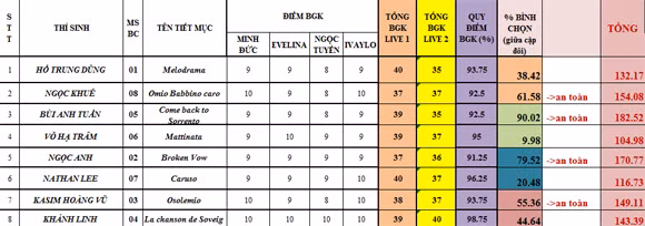 Sau 2 đêm thi vừa qua, số điểm của các thí sinh được tính bằng điểm tổng của 2 đêm thi và số điểm bình chọn của khán giả. Mặc dù có điểm thi không mấy cao nhưng nhờ có lượng bình chọn từ khán giả cao áp đảo, Bùi Anh Tuấn đang là thí sinh có điểm số cao nhất trong các thí sinh.