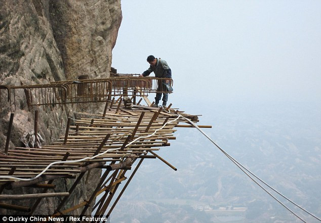 Những du khách có thể đo sự dũng cảm và sự chịu đựng của thần kinh khi đi bộ qua một con đường được chế tạo hoàn toàn từ kính và bám cheo leo bên các vách đá dựng đứng. Con đường này nằm ở độ cao 1432m so với mực nước biển, nằm tại vách núi Tianmen tại Trương Gia Giới, ở phía tây bắc tỉnh Hồ Nam, Trung Quốc.