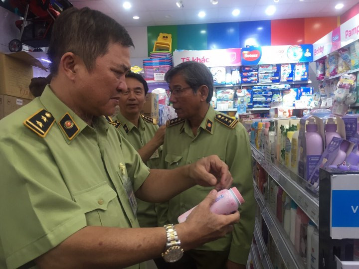 Phát hiện 130 sản phẩm mỹ phẩm (phấn, sữa tắm, sữa tắm- gội, sữa dưỡng da, nước hoa…) hiệu Johnson’s và Johnsonn’s Baby do Thái Lan, Philippines, Malaysia sản xuất, có nhãn hàng hóa dán trên sản phẩm không thể hiện số lô, số công bố mỹ phẩm theo quy định, có giá trị 12.082.000 đồng.