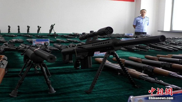 Một số hình ảnh về những khẩu súng và đạn dược bị tịch thu trong “Chuyên án tấn công tội phạm buôn bán súng đạn qua mạng” tại Liêu Ninh, Trung Quốc:
