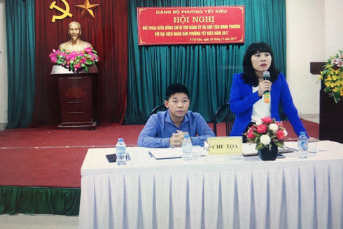Bí thư Đảng ủy phường Yết Kiêu (quận Hà Đông, Hà Nội) Nguyễn Thị Nhã phát biểu trong một buổi đối thoại với người dân
