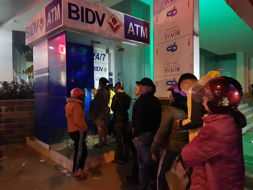 Người dân rồng rắn xếp hàng chờ rút tiền ở ATM