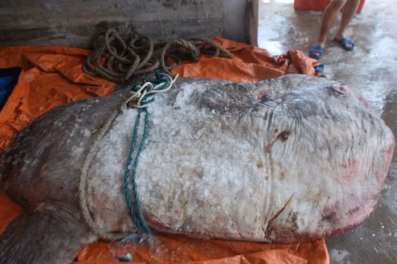 Ngày 23-8, thông tin từ UBND xã Quỳnh Long, huyện Quỳnh Lưu, tỉnh Nghệ An, cho biết, sáng cùng ngày thuyền của ngư dân Nguyễn Minh Vương trú tại xóm Đại Bắc đã cập bờ mang theo con cá mặt trăng rất lớn. Vào ngày 21-8, chiếc thuyền của anh Vương đang đánh bắt trên Vịnh Bắc bộ thuộc địa phận tỉnh Hà Tĩnh thì phát hiện một con cá lớn mắc lưới. Ngay sau đó, anh Vương cùng các thuyền viên đã bắt con cá lên và cho thuyền vào bờ. Sau 2 tiếng đồng hồ, cả tàu mới vớt được con cá lớn lên thuyền và xác định là loại cá mặt trăng quý hiếm. Con cá khi kéo lên thì đã chết. Khi đặt lên bàn cân, con cá nặng hơn 500kg, có chiều dài 2,8m và bề rộng tính cả vây là 2,5m.