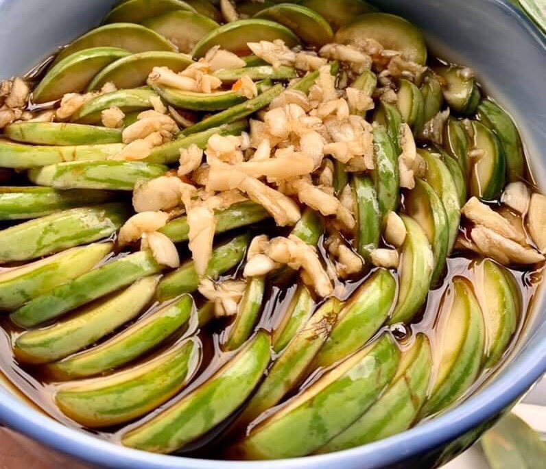 Ấy nhưng để ăn ngon hơn thì người ta cũng có nhiều ứng biến để có những món… ra trò. Cà sau khi thái lát mỏng, nếu ai muốn giữ nguyên vị mặn thì cứ thế cho vào lòng bàn tay mà vắt cho sạch nước muối, không thì rửa qua vài lần cho nhạt bớt. Thêm đường, thêm tỏi, lá chanh thái chỉ, ớt giã nhuyễn cứ thế mà trộn đều rồi vắt chanh thì mới tuyệt làm sao. Nhất là có đĩa rau muống, rau lang luộc, đậu rán, thịt luộc, múc lấy bát nước cà muối ra mà chấm thì bao nhiêu mỹ vị cũng chỉ quanh mâm cơm là cùng.