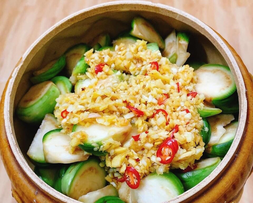 Bằng ấy thứ gia vị hòa với miếng cà khiến cho màu sắc của nó trở nên “xôn xao” hơn, vị cũng thân thương hơn và quyện miệng người thưởng thức. Không chỉ trộn lên như vậy, cà bát muối nén cũng có thể đem phi tỏi rồi xào lẫn tóp mỡ, thêm chút lá chanh thái chỉ thì bữa cơm khỏi cần mời, thực khách cũng gắp liền tay. Cà tưởng mặn là thế mà đem kho với cá, với thịt cũng cho món rất… ra trò.