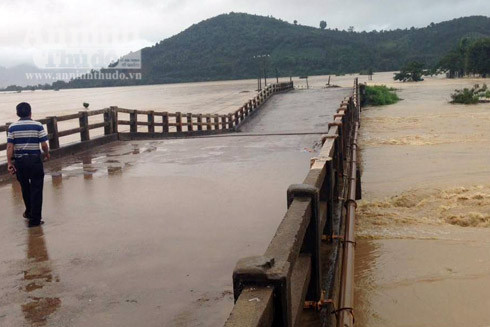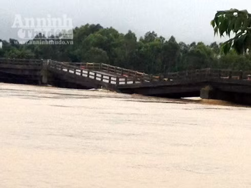 Mưa lũ khiến cầu chữ V, xã Khuê Ngọc Điền, huyện Krông Bông, bị gãy nhịp cầu chính. (Ảnh người dân cung cấp)