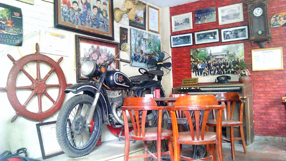 Anh Trần Quang Vinh - chủ quán là người có niềm yêu thích đặc biệt với xe cổ nên không tiếc công sức, tiền bạc để tìm kiếm và sửa chữa những chiếc xe. Đến nay, bộ sưu tập của anh đã lên đến 30 chiếc xe đủ các loại: Vespa, Lambrella, Velosolex... Anh chia sẻ rằng, ban đầu quán cà phê mở ra chủ yếu làm nơi giao lưu bạn bè, những người cùng mê xe cổ như anh nên không gian quán cũng phải đậm chất… dân chơi xe. Ngoài ra, tầng 3 của quán với không gian trầm lắng đặc biệt, được anh dành riêng để trưng bày “thập cẩm” các loại đồ cổ khác như điện thoại, đồng hồ, máy đánh chữ… Với thiết kế độc đáo, bắt mắt, vô tình quán của anh lại thu hút cả những người “ngoại đạo”.