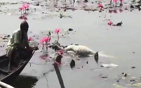 Một con cá sấu béo chết nổi trong ao của ông Sarwar