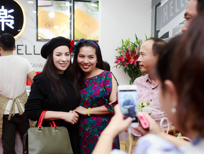 ANTD.VN - Ca sĩ Phi Nhung vội vã tới thẳng sự kiện để chúc mừng người em thân thiết Tân Đà Lạt khai trương tiệm bánh thứ hai tại Hà Nội.