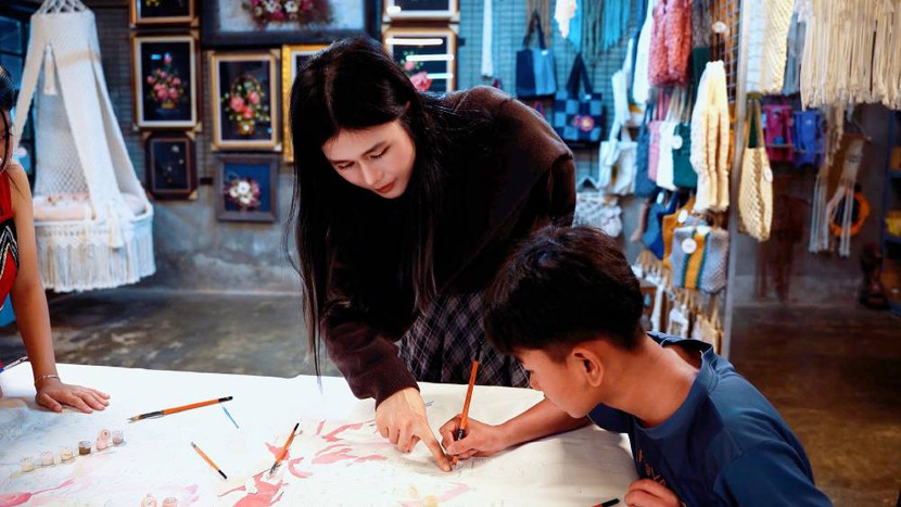 Đặc biệt, trong không gian ấm cúng của Lặng Art Café, hoạt động tô màu bức tranh hoa sen 54 cánh - biểu tượng xuyên suốt của dự án - tiếp tục được thực hiện. Lần này, các nghệ sĩ khiếm thính và khiếm thị đã góp phần tô màu lên những cánh hoa, tạo nên một bức tranh đầy ý nghĩa.