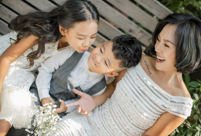 Vậy là ba mẹ con cô đã cùng nhau luyện giọng, tập biểu diễn, đi quay MV, vào phòng thu âm…và đương nhiên có rất nhiều thời gian dành cho nhau. Kết quả là 5 MV mẹ con cùng hát ra đời mà mỗi lần xem lại, cô đều vô cùng hạnh phúc với suy nghĩ “kho tài sản của mình đang dày lên”.