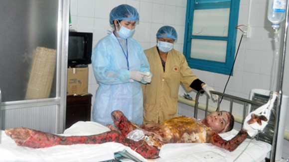 Công việc của một điều dưỡng ở đây vẫn là tiêm truyền, thay băng, nhưng với bệnh nhân bỏng thì rất đặc thù, có thể nói là vất vả gấp nhiều lần tại những cơ sở y tế khác. Đa phần đội ngũ điều dưỡng tại viện đều là nữ, có những khoa tỷ lệ nữ lên đến 90% nhưng công việc thì lại vô cùng nặng nhọc mà như các chị đùa với nhau “chả khác nào làm khuân vác”. Áp lực nhất phải nói đến đội ngũ y bác sĩ ở khoa Hồi sức cấp cứu, đã vào ca trực là phải thức cả đêm không có một phút được chợp mắt. Hầu hết các trường hợp cấp cứu tại đây đều bị bỏng nặng, thập tử nhất sinh. Có những bệnh nhân bỏng đến trên 90%, toàn thân phải băng bó trắng toát, hay bỏng sâu đến 50% bệnh nhân đau đớn rên la khiến nhân viên y tế phục vụ vô cùng áp lực tâm lý. Với những ca bỏng nặng như thế chỉ việc thay băng cho bệnh nhân thôi cũng mất vài tiếng đồng hồ với 6-7 điều dưỡng, người thì nâng tay, người thì nâng chân, người thay băng, người lấy dụng cụ… Mỗi ngày phải thay băng cho bệnh nhân 2-3 lần, chưa kể việc tiêm truyền diễn ra liên tục hàng giờ, phải đảm bảo tuyệt đối độ chính xác, tiêm nhiều đến nỗi… chai cả tay. Có những ca do ở xa hoặc do sơ cứu không đúng cách, đến viện muộn vết bỏng bị hoại tử, bốc mùi khó chịu, thậm chí có những ca đã có ròi. Với người bình thường, kể cả người nhà nhiều khi cũng không dám nhìn hay trót nhìn thì về không dám ăn cơm, nhưng với các y tá thì đó là nhiệm vụ họ phải làm.