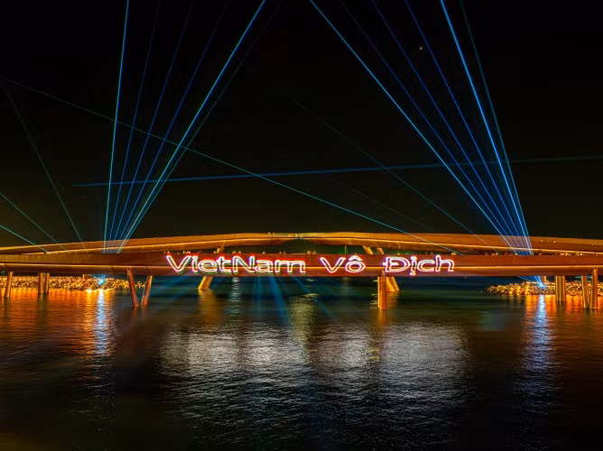 Tại Đà Nẵng, vòng quay Sun Wheel khổng lồ cao 125m tại Khu du lịch Da Nang Downtown ngay trong đêm 5/1 đã phát sáng hình ảnh lá cờ Tổ quốc và chạy dòng chữ “Việt Nam vô địch”, tạo nên một hình ảnh đầy xúc động trong khung cảnh lung linh của Đà Nẵng về đêm và biển người đi “bão” ăn mừng chiến thắng của đội tuyển quốc gia. Khách sạn Novotel Danang Premier Han River -Khách sạn dành cho doanh nhân hàng đầu Việt Nam” do World Travel Awards trao tặng cũng chạy đèn led hiển thị màu quốc kỳ Việt Nam với dòng chữ “Việt Nam chiến thắng”.
