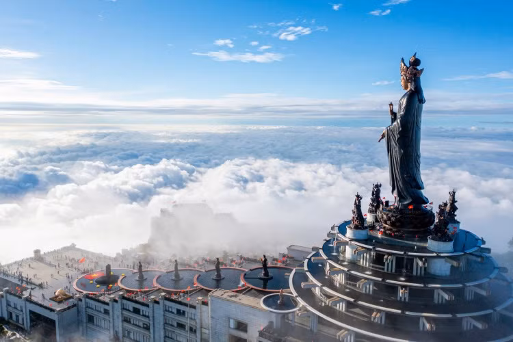 Đỉnh Fansipan, nơi lá cờ đỏ sao vàng cắm ở cột mốc cao nhất của ba nước Đông Dương là điểm đến đại diện của lòng tự hào Việt Nam. Ngay từ sáng ngày 6/1, lễ thượng cờ đã được tổ chức trang nghiêm giữa không gian hùng vĩ của “nóc nhà Đông Dương”. Tại đây, gần 1.000 du khách đã có mặt từ sáng sớm, tay cầm những lá cờ đỏ sao vàng được khu du lịch Sun World Fansipan Legend tặng để tham dự nghi lễ.