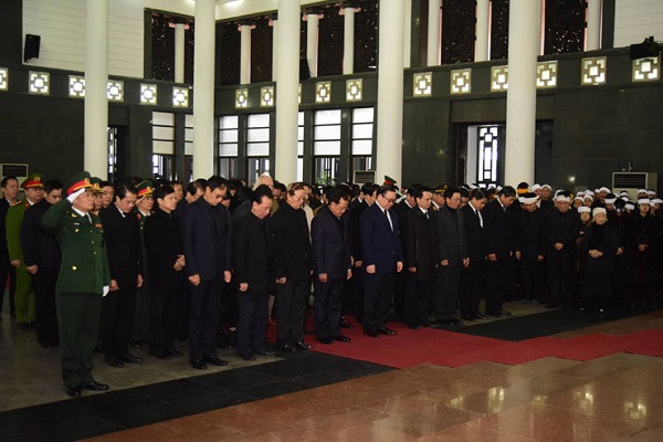 Tiếp đó, đoàn đại biểu Chính phủ do Ủy viên Bộ Chính trị, Thủ tướng Chính phủ Nguyễn Xuân Phúc dẫn đầu vào viếng. Đoàn đại biểu Quốc hội do Ủy viên Bộ Chính trị, Chủ tịch Quốc hội Nguyễn Thị Kim Ngân dẫn đầu vào viếng. Đoàn đại biểu Ủy ban Trung ương MTTQ Việt Nam do đồng chí Nguyễn Hữu Dũng, Phó Chủ tịch Ủy ban Trung ương MTTQ Việt Nam dẫn đầu vào viếng.