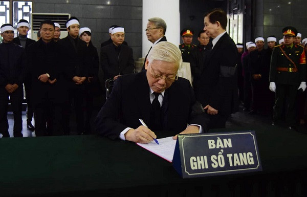 Tổng Bí thư-Chủ tịch nước Nguyễn Phú Trọng ghi sổ tang tại lễ viếng đồng chí Nguyễn Văn Trân