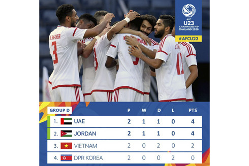 Sau 2 lượt trận đấu tại vòng bảng Giải Bóng đá U23 châu Á 2020, U23 Việt Nam hiện đang có 2 điểm (sau 2 trận hòa), kém 2 điểm so với hai đội đứng trên là U23 Các Tiểu vương quốc Ả Rập Thống nhất ( UAE- 4 điểm) và U23 Jordan (4 điểm).