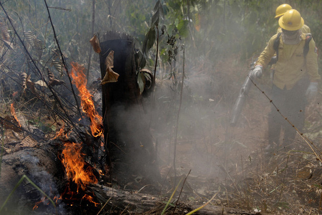 Lính cứu hỏa nỗ lực dập lửa trong rừng Amazon