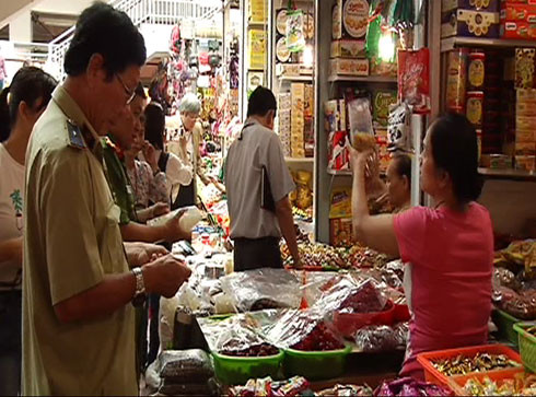Mứt gừng, mứt bí, nho, mận... Những loại mứt trần truyền thống được bày bán tràn lan tại Chợ Quảng Ngãi (thành phố Quảng Ngãi, tỉnh Quảng Ngãi)... Tất cả đều được bán theo kiểu đổ đống, cân ký, không có bao bì đóng từng gói nhỏ sẵn. Bởi vậy, những thông tin về sản phẩm như: cơ sở sản xuất, thành phần, hạn sử dụng... người tiêu dùng không thể biết được. Nói về việc này, bà Lê Thị Kim Loan - cửa hàng bánh kẹo Chợ Quảng Ngãi, cho biết: “Người tiêu dùng họ đâu có mua 1 lần nguyên bao nên phải đổ ra họ mua từng lý, từng ký để bán”.
