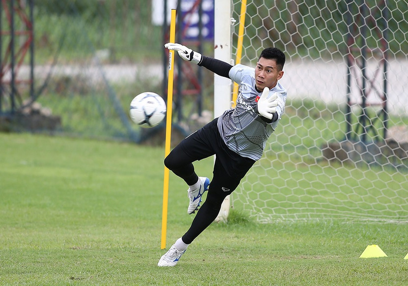 Thủ môn Tuấn Mạnh trong buổi tập sáng 2-9 tại Thái Lan (Ảnh: Ngọc Luân)