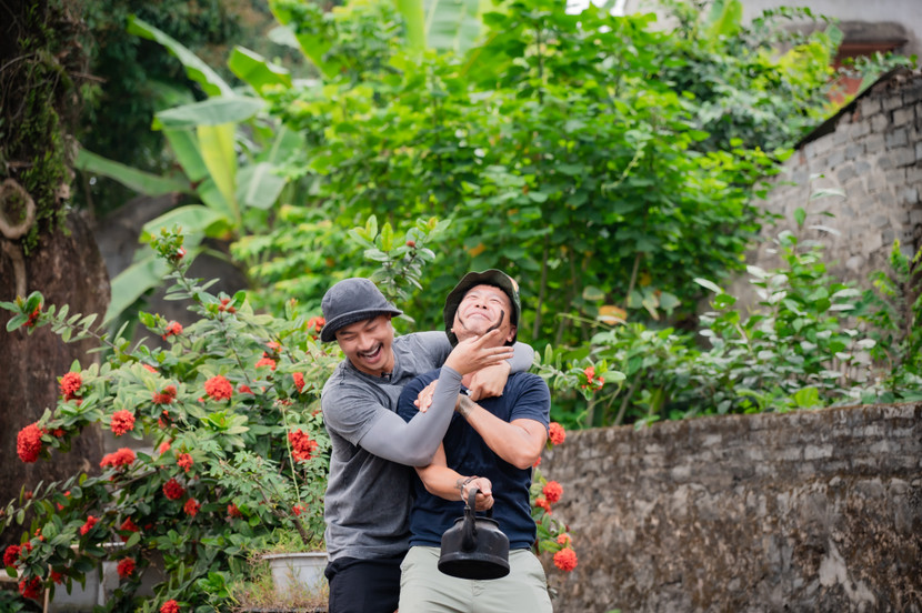 Một buổi chiều mát rượi tại sân đình cổ ở Ninh Bình, không ai ngờ rằng bốn ông bố nghệ sĩ nổi tiếng lại hồn nhiên… bôi nhọ nồi vào mặt nhau với sự sung sướng không thể tả.