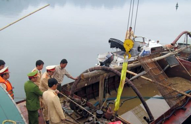 CAH Ba Vì bắt giữ nhiều tàu hút cát trái phép với công suất lớn
