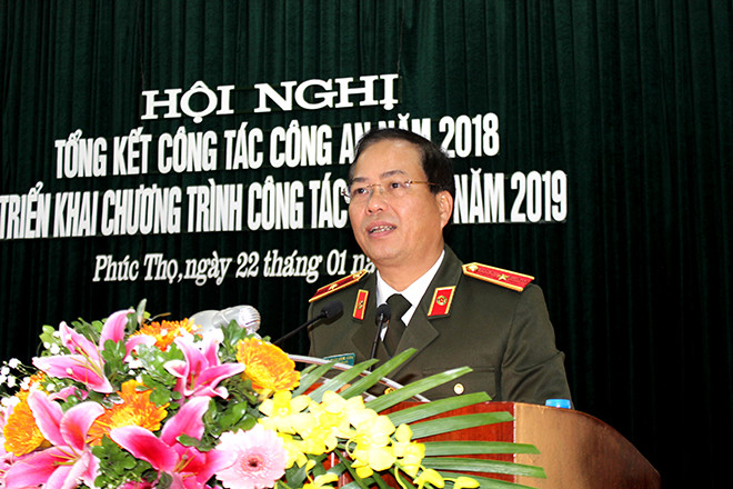 Thiếu tướng Đoàn Ngọc Hùng ghi nhận, biểu dương và chúc mừng những kết quả CBCS CAH Phúc Thọ đã đạt được trong năm 2018. Giao nhiệm vụ cho CBCS CAH Phúc Thọ trong thời gian tới, đồng chí Phó giám đốc CATP yêu cầu, CBCS CAH Phúc Thọ quán triệt, triển khai nghiêm túc chỉ đạo của đồng chí Bộ trưởng Bộ Công an tại hội nghị Công an toàn quốc lần thứ 74; chỉ đạo của Giám đốc CATP tại hội nghị tổng kết năm của CATP; đồng thời cụ thể hoá Nghị quyết của Đảng uỷ và Chương trình công tác năm 2019 của CATP.
