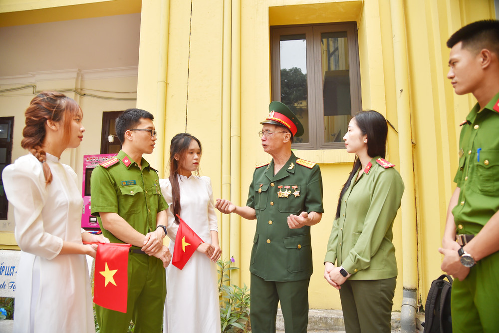 Cái bắt tay đặc biệt giữa người cựu binh 50 năm trước với thế hệ trẻ Công an Thủ đô hôm nay