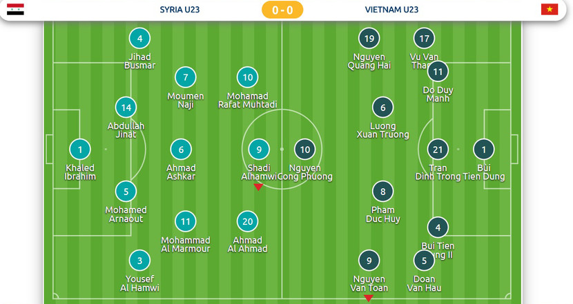 Khác với dự đoán của giới chuyên môn, U23 Syria nhập cuộc khá thận trọng, không tràn lên tấn công mà chủ động chờ U23 Việt Nam sơ hở để phản công. Trong khi đó, thầy trò HLV Park Hang-seo cũng chủ động chơi chắc phần sân nhà, với ít nhất 5 cầu thủ luôn thường trực trước khung thành Tiến Dũng.
