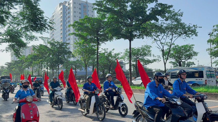 | Bà Đào Thị Thu Hằng, Chủ tịch UBND phường Tương Mai phát biểu tại lễ ra quân |