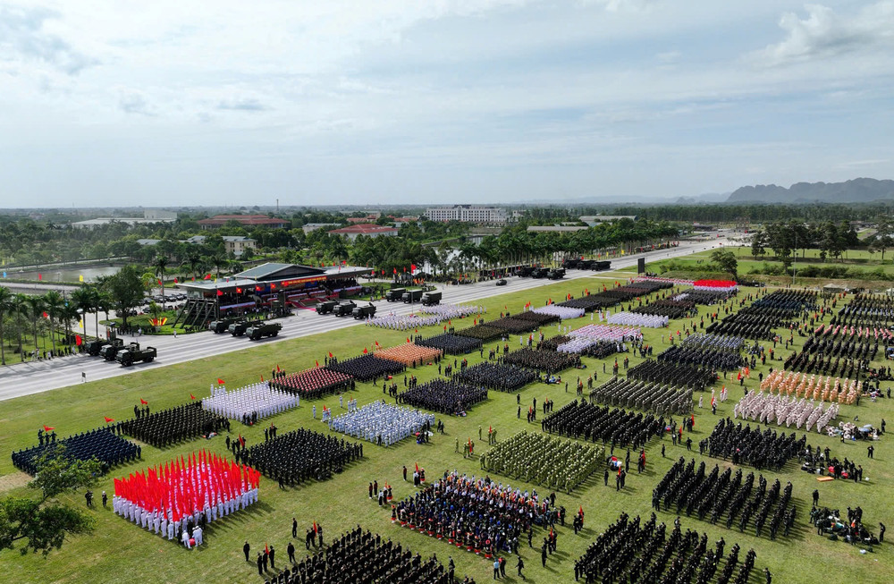 ANTD.VN - Ngày 5-8, tại Trung tâm Huấn luyện Quân sự quốc gia 4 (Mỹ Đức, Hà Nội) đã diễn ra buổi tổng hợp luyện các khối diễu binh, diễu hành chuẩn bị cho dịp kỷ niệm 80 năm Cách mạng Tháng Tám và Quốc khánh 2-9. Đây là lần thứ 2 tổng hợp luyện với sự tham gia của gần 16.000 cán bộ, chiến sĩ Công an và Quân đội, cùng nhiều loại vũ khí, khí tài hiện đại.
