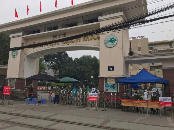 [Ảnh] Lực lượng Công an chốt chặn, kiểm soát chặt chẽ Bệnh viện Bạch Mai phòng dịch Covid-19