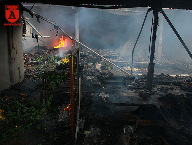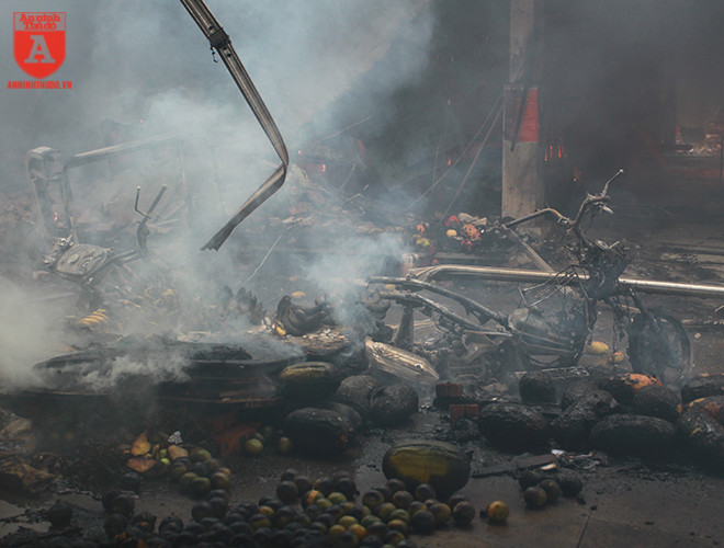 Cận cảnh hiện trường vụ cháy chợ Quang, xã Thanh Liệt, huyện Thanh Trì