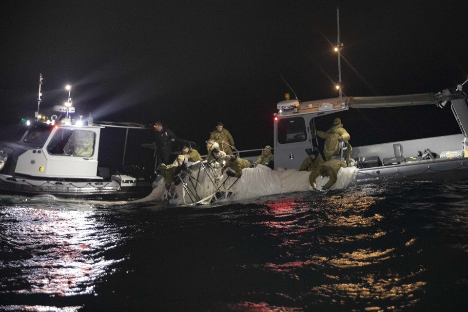 Cận cảnh hoạt động trục vớt xác khinh khí cầu Trung Quốc của Hải quân Mỹ