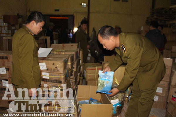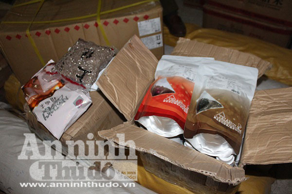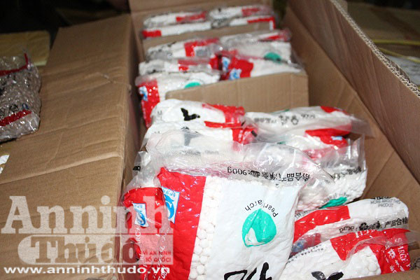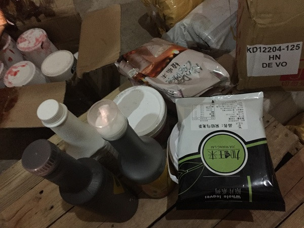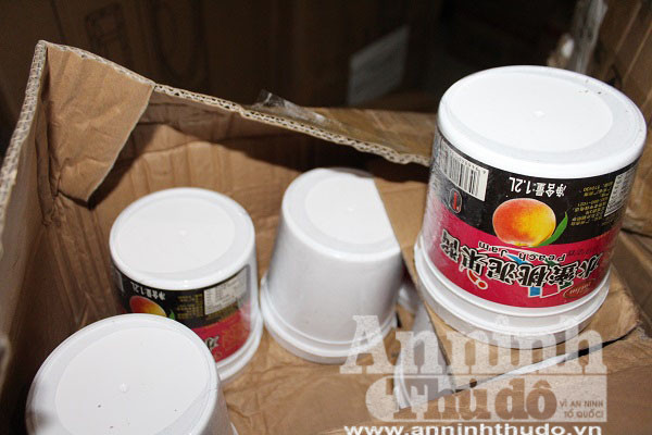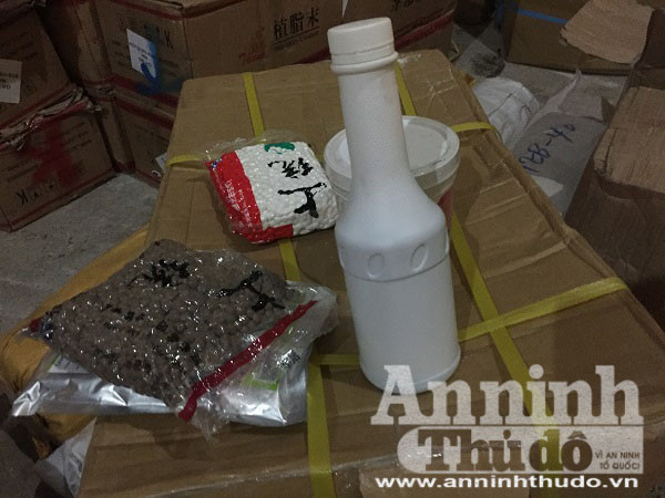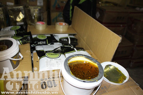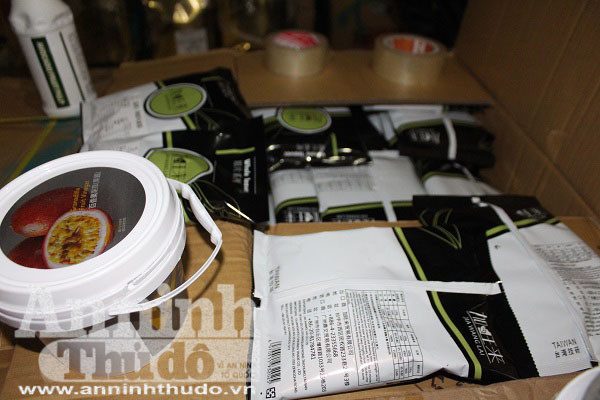 ANTD.VN - Hơn 4 tấn phụ gia, hương liệu như nước chanh leo, sirô, bột trân châu, trà, bột thạch... là nguyên liệu dùng để pha chế trà sữa vừa bị lực lượng chức năng Hà Nội thu giữ chiều tối 26-12.