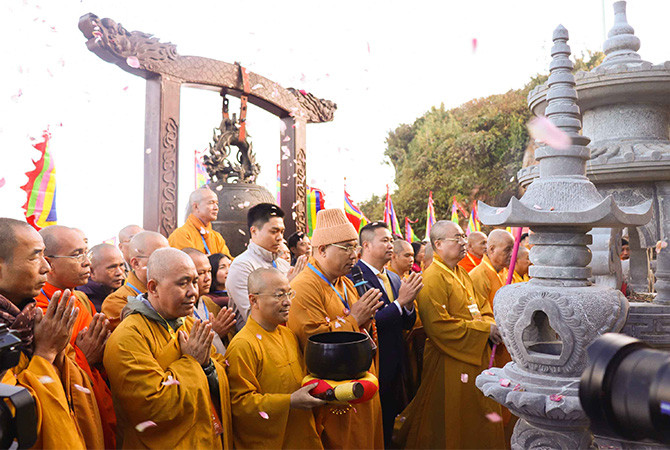 Tại đây, Hoà thượng Thích Thanh Nhiễu và các chư tôn, giáo phẩm, các hoà thượng của Giáo hội Phật giáo Việt Nam thực hiện các nghi lễ tâm linh, cùng các tăng ni, Phật tử, đại biểu và du khách đồng tâm, đồng nguyện hướng đến thiện pháp thiêng liêng, nhất tâm cầu nguyện cho mọi tai ương, địch hoạ, động đất, sóng thần, chiến tranh đau thương giảm bớt, để nhân loại chúng sinh bớt đi những phiền muộn, khổ đau.
