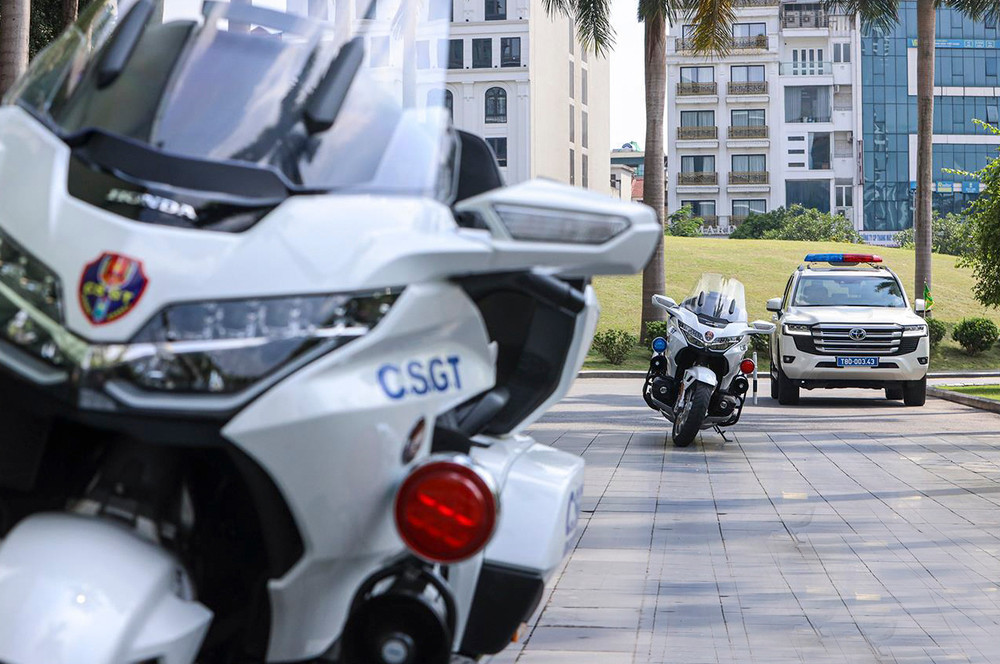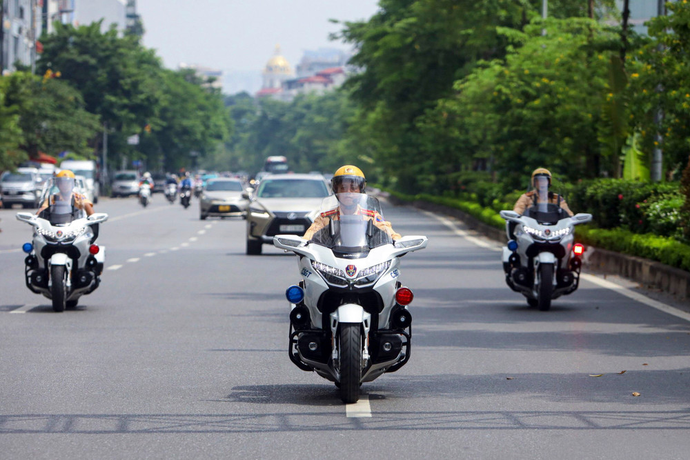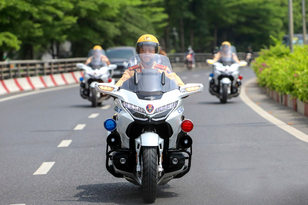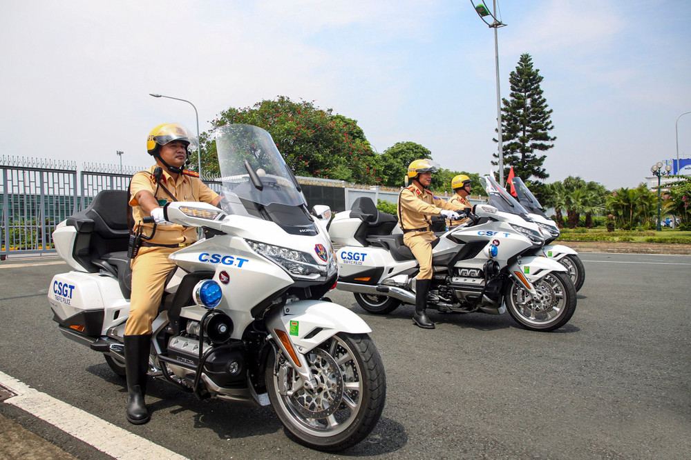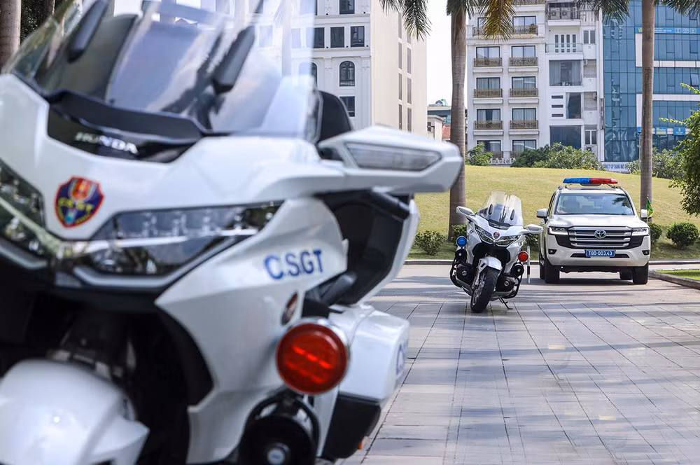 ANTD.VN - Siêu mô tô Honda Goldwing với thiết kế mạnh mẽ chính thức được lực lượng Cảnh sát giao thông đưa vào làm nhiệm vụ đón dẫn đoàn lãnh đạo Đảng, Nhà nước, khách quốc tế đến thăm và làm việc tại Hà Nội gây ấn tượng mạnh mẽ trong thời gian gần đây.