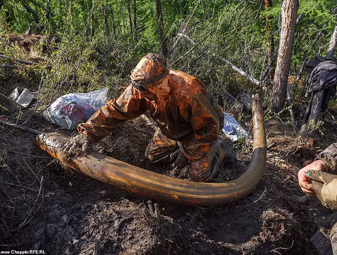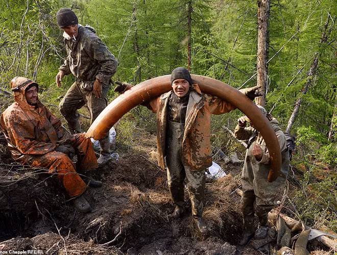 ANTD.VN - Những thợ săn người Nga đang mạo hiểm mạng sống của mình khi khai quật trái phép những chiếc ngà voi ma mút thời tiền sử được bảo quản trong băng vĩnh cửu ở Yakutia và bán thị trường ngà voi châu Á. Các đối tượng này có thể kiếm được bộn tiền bởi ngà voi ma mút và sừng tê giác thời tiền sử có giá tương đương vàng hay còn gọi là “vàng trắng”.