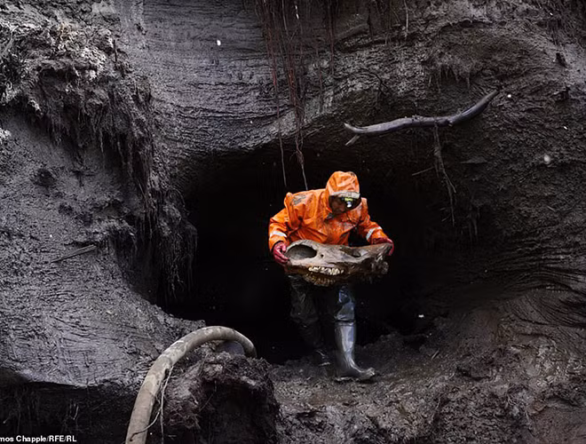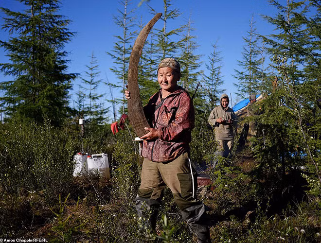 Cận cảnh "thợ săn" đào tìm ngà voi ma mút trong lớp băng vĩnh cửu ở Nga