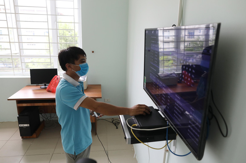 Đặc biệt, hệ thống camera lắp đặt tại Trung tâm (54 camera cho 4 tầng) có thể chiếu tận mặt bệnh nhân và từng thông số truyền đến phòng điều hành, y bác sĩ không cần phải đến trực tiếp giường bệnh nhân, hạn chế tối đa khả năng lây nhiễm và giảm tải cho y bác sĩ. Cùng với đó, hệ thống máy oxy khí nén lắp đặt tại Trung tâm toàn bộ tự động hóa, sẵn sàng oxy khí nén lỏng cho bệnh nhân thở, cấp đến từng đầu giường. Hệ thống này đạt công suất 1 tuần cho 100 giường, giảm tải sức lực con người phải vận chuyển bình oxy, giảm tải cho y bác sĩ và hạn chế nguy cơ lây nhiễm.
