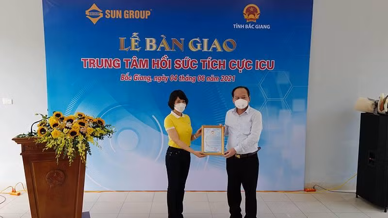 Với quyết tâm và nỗ lực tập trung tối đa để đưa Trung tâm ICU đi vào vận hành sớm nhất, kịp thời giúp Bắc Giang giảm bớt áp lực trong điều trị bệnh nhân Covid-19 nặng, trong giai đoạn cao điểm của 04 ngày đầu thi công, Sun Group đã huy động tới 200 cán bộ, kỹ sư, công nhân thi công suốt ngày đêm. Dưới sự chỉ đạo sát sao của UBND tỉnh, sự phối hợp của nhiều Sở, ngành, sự đồng hành của các cán bộ, chuyên gia Bộ Y tế và Bệnh viện Bạch Mai, sự hỗ trợ của nhiều lực lượng, Trung tâm đã hoàn thành sớm hơn so với kế hoạch 2 ngày.