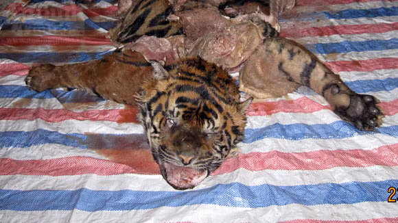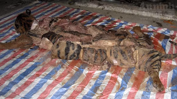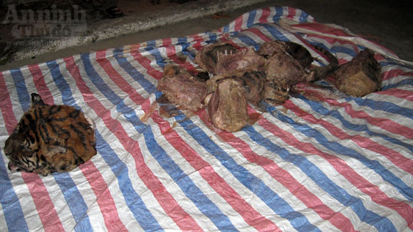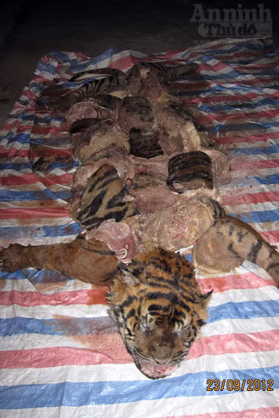 Trước đó, cá thể hổ đông lạnh nặng 280kg được chặt ra những khúc nhỏ