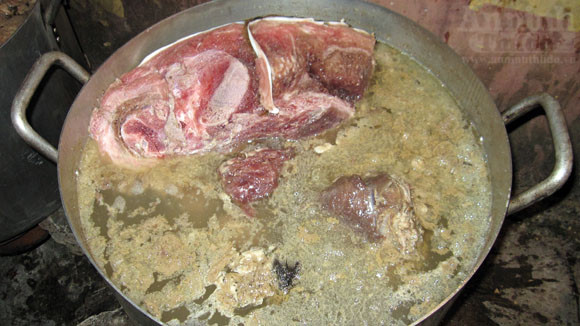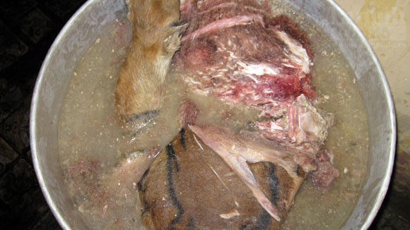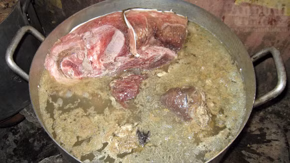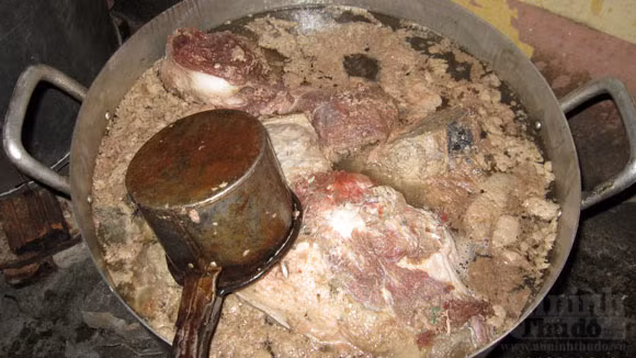 Thịt hổ được luộc trên 4 nồi to để tách lấy xương... nấu cao