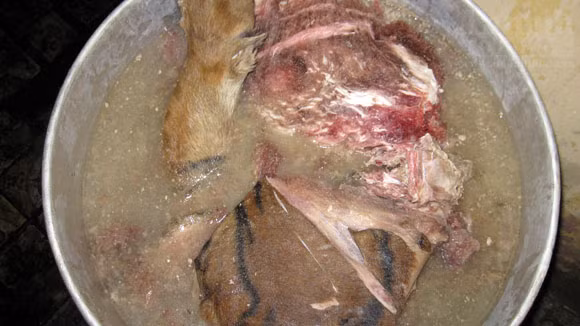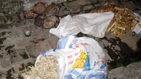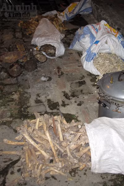 Cùng với thịt hổ, nhiều mai rùa, xương động vật khác được tìm thấy trong "lò nấu cao" này