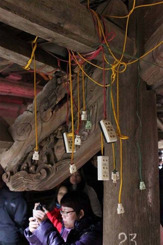 Hệ thống điện trong một ngôi đình (Ảnh: Nguyễn Bình)