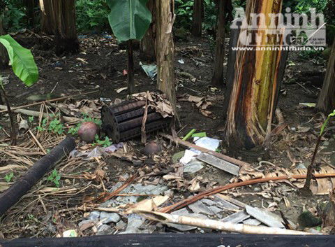 Chiếc ao cạn, nơi hung thủ sát hại nạn nhân sau đó dùng đá đè lên nhằm xóa dấu vết