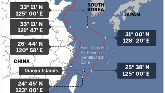 Thủ tướng Nhật Bản Shinzo Abe ngày 25-11 khẳng định tuyên bố thiết lập cái gọi là ADIZ của Trung Quốc trên biển Hoa Đông bao gồm cả các đảo tranh chấp là “hết sức nguy hiểm”. “Tôi vô cùng quan ngại bởi động thái vô cùng nguy hiểm này của Trung Quốc có thể gây hậu quả khôn lường”, Thủ tướng Shinzo Abe phát biểu trước quốc hội. Phía Nhật Bản cũng yêu cầu Trung Quốc dừng ngay kế hoạch lập vùng phòng không này.