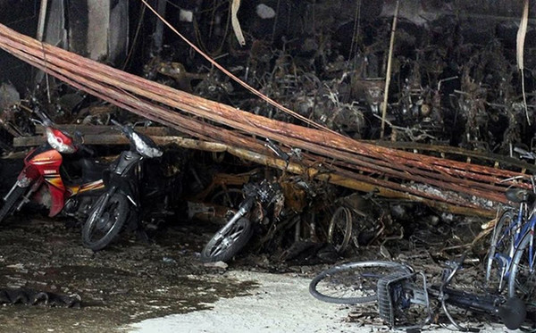 Hiện trường vụ cháy, nổ trạm biến áp tại tầng hầm chung cư Xa La, Hà Đông đã thiêu rụi hàng chục xe máy