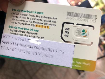 Sau khi nhận chiếc sim đầu tiên mang số 096618838...với số seri 8984048000040613778, anh Bình làm theo hướng dẫn được đính kèm theo sim “để được đăng ký chính chủ, khách hàng chụp 2 mặt thẻ sim, 2 mặt chứng minh nhân dân và gửi vào Facebook bên bán. Sau 30 phút khách hàng lắp sim gọi 900”.