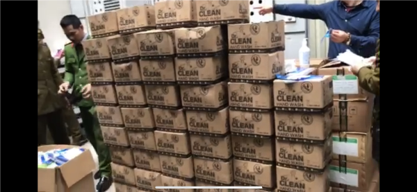 Số lượng khẩu trang và dung dịch nước rửa tay không có giấy tờ chứng minh nguồn gốc, xuất xứ vừa bị phát hiện, thu giữ